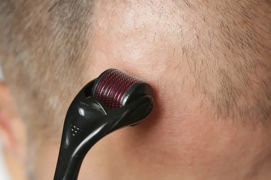 Step 3: Microneedling with Dermaroller – A medical-grade Dermaroller is gently rolled over the scalp, creating micro-channels that: