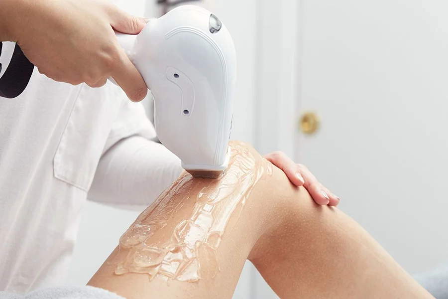 - Laser Treatment – A laser device is used to emit concentrated light pulses onto the treatment area, which targets the hair follicles without damaging the surrounding skin